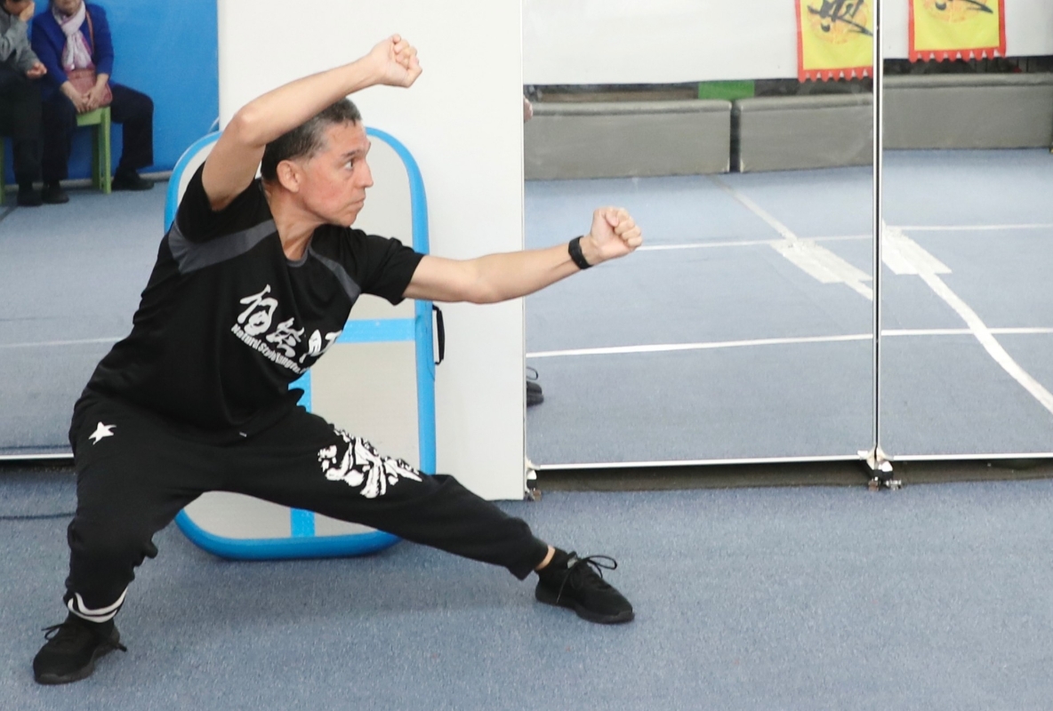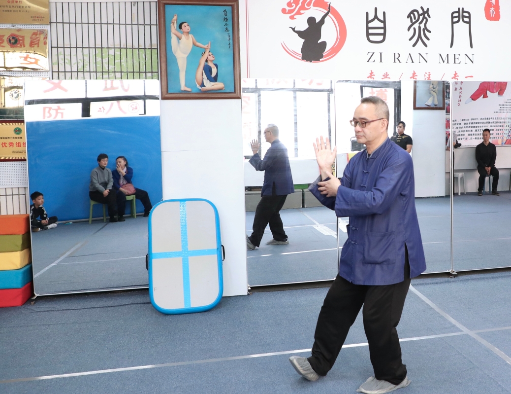 美國武術家、自然門弟子陳洋演練自然門應用拳。 國際自然門聯合總會副主席、香港《武術家》機構總監嚴義松表演吳氏太極拳、美國武術家、自然門弟子陳洋演練自然門應用拳,此外常務理事王怡的車派形意拳及副主席洪少葵南少林鶴拳的演示更添精彩。功夫導演李釗在觀摩後感慨,見到年輕一代基本功如此紮實,體現了傳統與現代競技武術的完美融合,令人欣慰。首次到訪深圳的美國武術家陳洋亦對此次交流深有感觸,認為此舉更有助於讓中華武術文化走向國際。