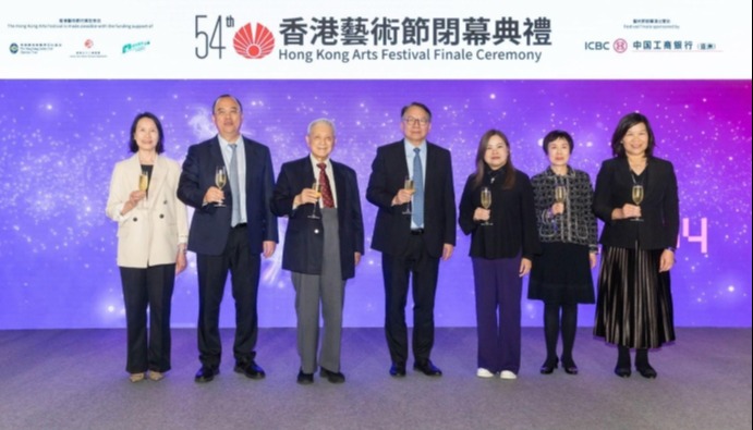 香港新聞網3月27日電 第54屆香港藝術節已於今晚(3月27日)圓滿閉幕,閉幕演出為知名導演與編舞黎星與黄佳圓合編的舞劇《牡丹亭》,閉幕祝酒儀式於香港文化中心舉行,榮譽嘉賓為香港特別行政區政府政務司司長陳國基,並聯同香港藝術節協會主席盧景文、文化體育及旅遊局局長羅淑佩、中國工商銀行(亞洲)董事長兼執行董事劉亞干、香港賽馬會慈善事務部主管(文化;體育;社區聯繫協作)葉巧兒、康樂及文化事務署署長陳詠雯,以及香港藝術節行政總監余潔儀擔任主禮嘉賓。