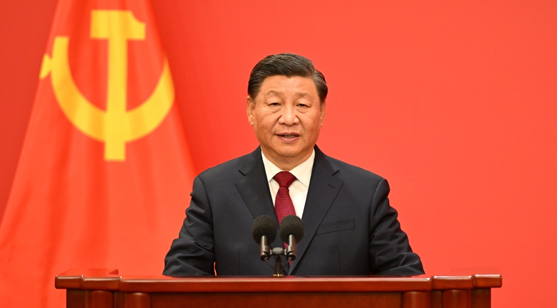 10月23日,剛剛在中國共產黨第二十屆中央委員會第一次全體會議上當選的中共中央總書記習近平和中共中央政治局常委李強、趙樂際、王滬寧、蔡奇、丁薛祥、李希在北京人民大會堂同中外記者親切見面。習近平發表重要講話。