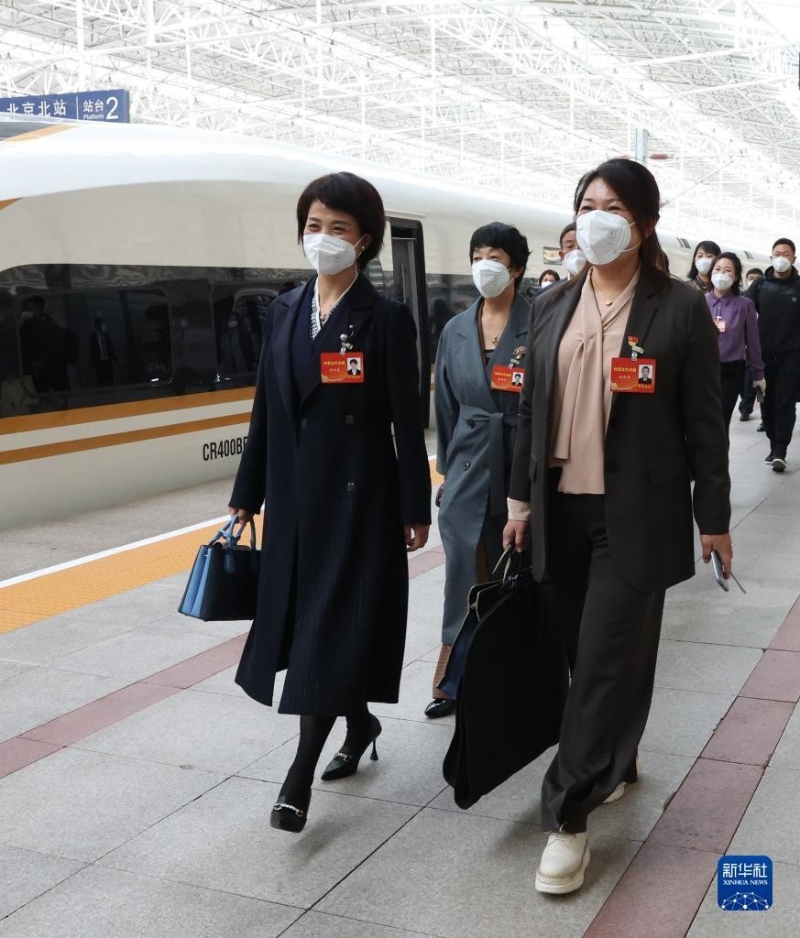 10月13日,來自內蒙古自治區的黨的二十大代表乘高鐵抵達北京北站。新華社圖片