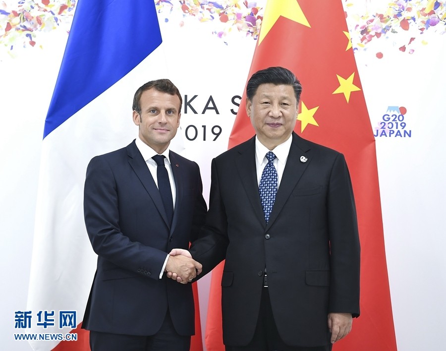資料圖:2019年6月29日,中國國家主席習近平在大阪會見法國總統馬克龍。