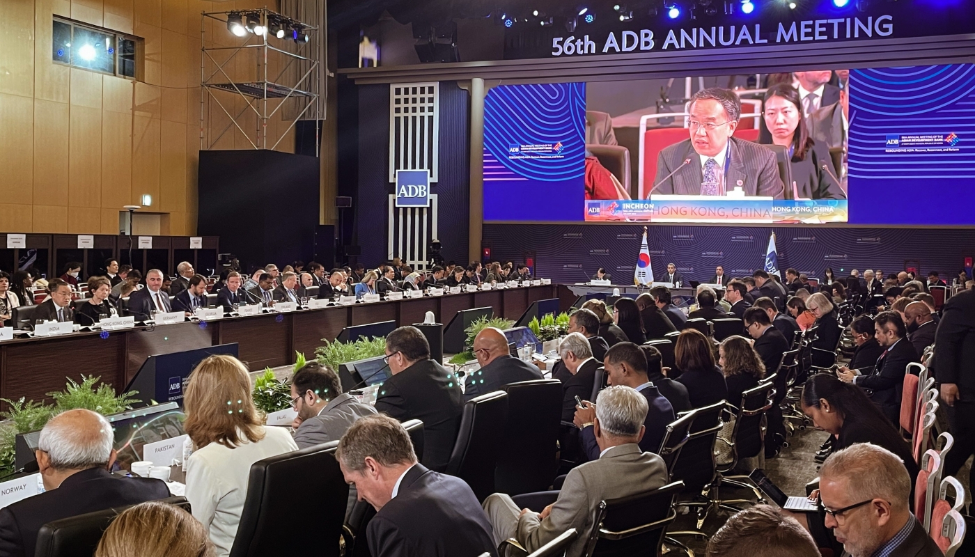 圖片來源:政府新聞網。圖示:許正宇(第一排左一)在理事商務會議上發言。 就本屆年會主題“亞洲經濟重拾升軌:復蘇、重新連接及改革”,許正宇在理事商務會議上表示,該主題適逢其時,反映環球各國在後疫情時代的共同目標。他亦闡述,為了實現亞行訂立的主題,香港一直在三方面下工夫。 他表示,香港在2021年推出了資助先導計劃,為發行保險相連證券提供資助,為共四次巨災債券的發行提供便利,總發行額達5.6億美元。他歡迎亞行成員利用香港的平台發行保險相連證券。 當天下午,許正宇與韓國金融委員會委員長金周顯會面,並表示香港作為國際金融中心,對全球從事虛擬資產業務的創新者持開放和兼容的態度。