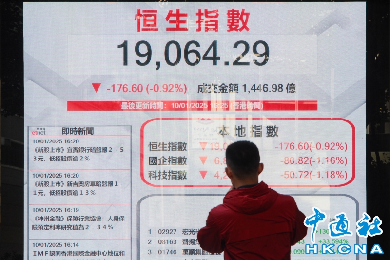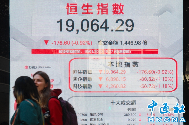 香港恒生指數跌176.60點 報19064.29點分享到: