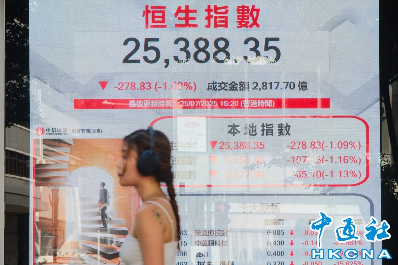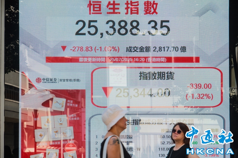 香港恒生指數跌278.83點 報25388.35點分享到: