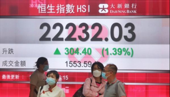 香港中通社10月20日電(記者 張明臻)市場憧憬中美關係緩和,港股上周累挫逾千點後顯著反彈。恆指20日收報25858點,升611點或2.42%;大市全日成交2391億港元。