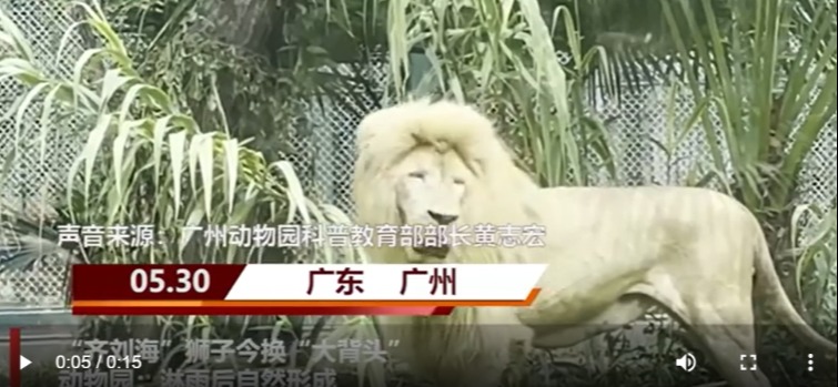 阿杭熱爆網絡。圖源:央視網 由於有網友在游覽廣州動物園時發現,園內一隻雄性白獅髮型有點“憨憨”,頂著個“齊劉海”。照片發佈到社交平台後引起網友熱議,成為話題。