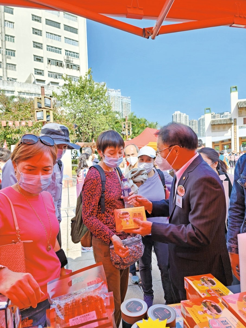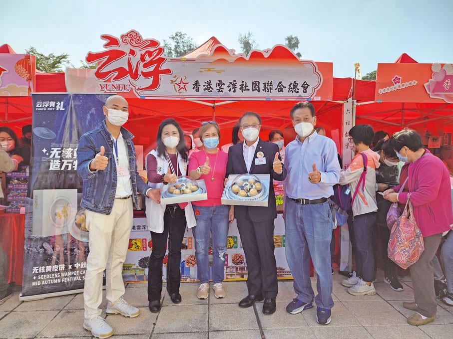 香港雲浮社團展銷攤位吸引了廣大市民駐足體驗。 圖源:文匯報 面對現場熱烈的氣氛,香港雲浮社團聯合總會創會會長暨永遠榮譽會長陳禮安介紹指,雲浮市位於粵港澳大灣區西側,是廣東省最年輕的地級市,被譽為“中國禪都”。西江黃金水道貫穿全境,雲浮段水質常年保持II類標準以上,通航能力達3,000噸級以上,被譽為“西江明珠”;石材產業享譽全球,被譽為“中國石都”,是中國三大石材基地之一。雲浮人傑地靈,歡迎廣大港澳青年把握機遇,主動投身粵港澳大灣區建設。同時,歡迎大家到雲浮進行觀光考察、投資置業。