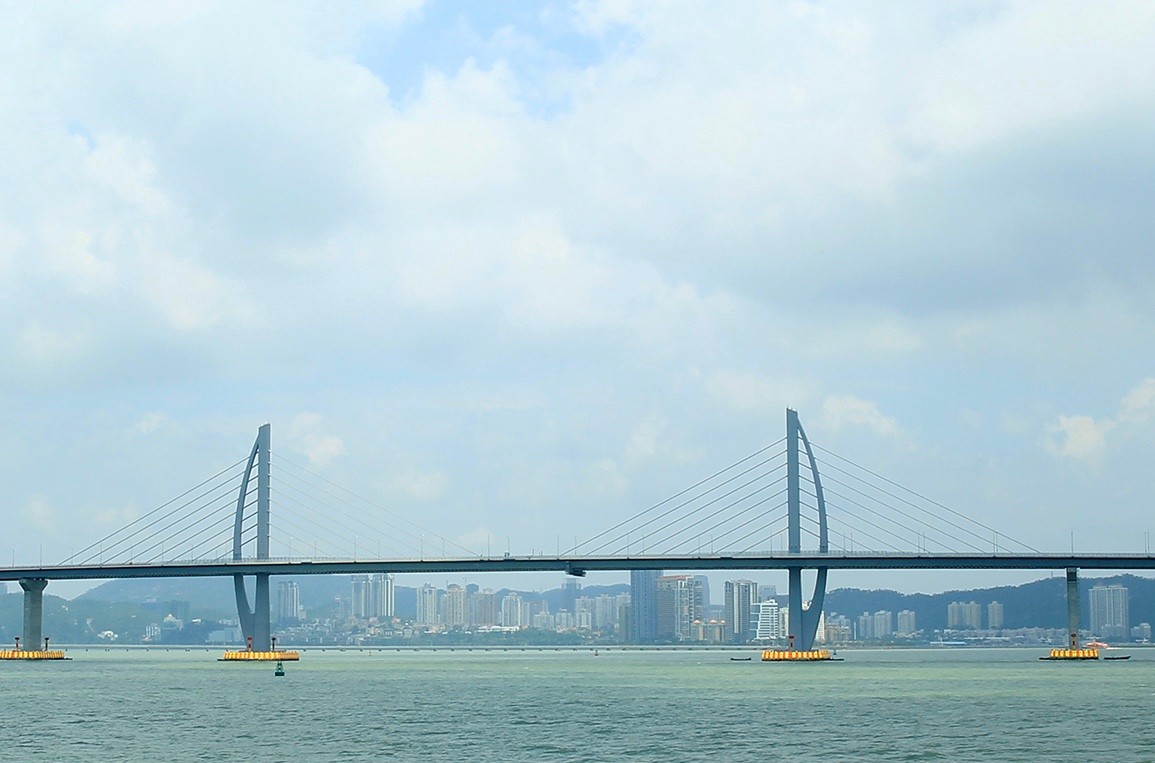港珠澳大橋是世界最長的跨海通道工程。圖源:文匯網 國際橋協主席Tina Vejrum在授牌現場宣讀了港珠澳大橋的獲獎評語:大橋全長55公里,是世界最長的跨海通道工程,由填海工程、人工島、沉管隧道、連續梁橋和斜拉橋組成。它可以從陸地、海洋和空中多維呈現,其設計融入了美學、環境、工程和耐久等多方面元素。