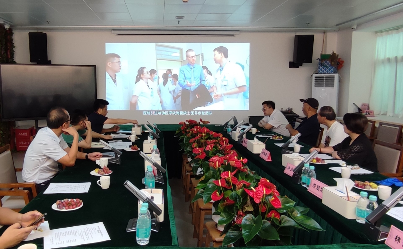 南澳人民醫院執行院長楊安群(中)、辦公室主任廖玉峰(左二)香港中泰盛大投資集團董事長林梅香(右五)、香港茶藝軒董事長劉正慶(左五)、利達國際集團董事長洪楚焺(右四)、觀塘太極養身推手會施雄鵬師傅(右三)、俊華園飲食集團董事長林俊明(左四)、南澳醫院護理院康復中心負責人王季(右一)等出席交流座談會。 參觀交流期間,由林梅香董事長向南澳人民醫院護理院贈送一批南洋藥廠的藥和其他物資。來自香港的“茶王”劉正慶也贈送珍貴的香港回歸1997紀念茶餅。一行嘉賓在南澳人民醫院參觀了康復運動治療室、綜合護理院、瞭解一系列有關護理養老保健的流程和優惠政策。南澳人民醫院執行院長楊安群、副院長羅月容女士、護理院執行院長、康復中心主任肖鵬、精神康復科主任張曉華女士、南澳醫院護理院康復中心負責人王季等出席交流座談會。 南澳人民醫院執行院長楊安群介紹,南澳人民醫院是一家集醫療、急救、教學、科研、預防保健、康復為一體,以康復為特色的二級康復醫院。目前開設有急診科、門診部、內科、外科、兒科、婦產科、中醫科、康復醫學科、口腔科、藥劑科、檢驗科、放射科、功能科、麻醉科等14個臨床科室,成立了“康復、中醫、眼科、針灸、內科”等五個名醫工作室。藉助深圳市第二人民醫院先進的醫療技術和管理經驗,結合南澳得天獨厚的優美自然環境,2008年與市二院合作共建康復科,成功探索出一條適合基層醫院發展的“大醫院牽手小醫院”的路子和“大專科小綜合”的醫院管理模式,實現跨越式發展。康復科經過近十年的建設與發展,科室的規模在全市公立醫院中已處於領先水平;2015年與美國哈佛大學醫學院附屬康復醫院、深圳市第二人民醫院聯合簽訂了戰略合作協議,建立腦重塑康復室,實現三方在未來康復領域的國際化、前沿化,打造雙贏、可持續發展的戰略合作夥伴關係;2019年創建成立了康復醫學中心,下設骨關節與疼痛康復病區、神經與老年康復病區、醫養結合康復病區、植物人促醒及心肺康復病區等4個病區和一個康復治療科(含腦重塑實驗室),可開展殘疾人康復、骨傷科康復、神經康復、老年病康復、心肺康復、疼痛康復等項目。康復科通過不斷打造核心競爭力,在全市乃至華南地區逐步樹立了自己的康復品牌。