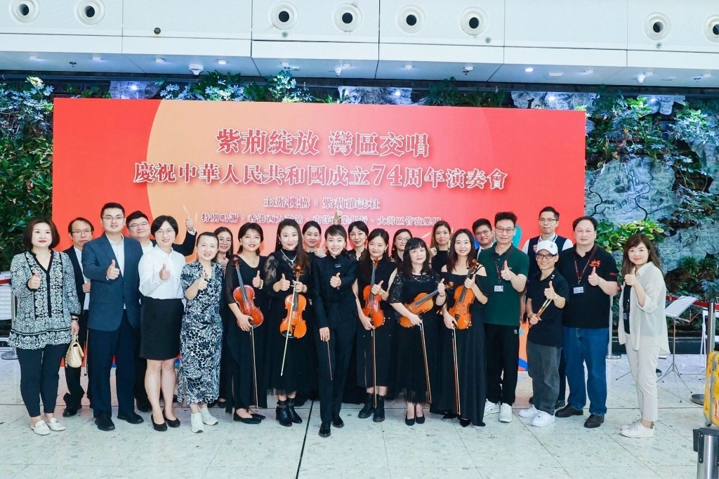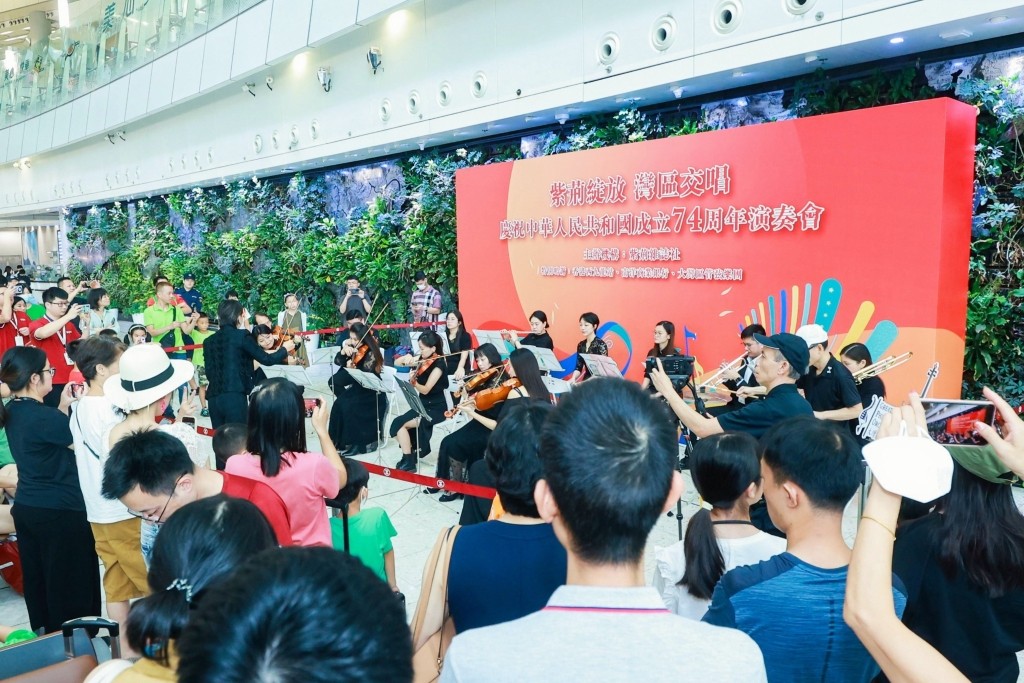 這場活動是由紫荊雜誌社主辦的“紫荊綻放 灣區交唱——慶祝中華人民共和國成立74周年演奏會”,這是繼9月29日的漢服秀快閃活動後,在西九龍站開展的又一公益性展演活動。此次活動得到了香港西九龍站、南洋商業銀行的大力支持。