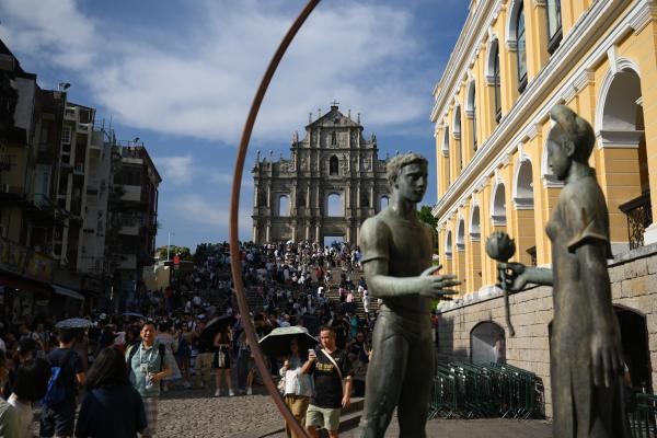 10月1日,旅客在澳門大三巴牌坊前。香港中通社圖片 李偉農當日在作2024年財政年度經濟財政範疇施政方針引介時指出,2024年經濟財政範疇的施政方向,是落實經濟適度多元發展,善用財政資源,融入國家發展大局。政府將重點關注〝1+4〞產業之間的相互促進、協同發展,尤其要深入提升橫琴粵澳深度合作區產業聯動發展所產生的新動能。 李偉農表示,未來政府將重點發展旅遊經濟,2024年會特別推出為拓展國際客源而設的旅遊推廣計劃,并從財政預算層面預留資源。同時,政府會持續切實推動幸運博彩經營承批公司著力發展各種非博彩元素,利用商業網絡優勢,為本地引入更多國際品牌盛事活動,打造更受各地旅客喜愛的旅遊產品。 此外,2024年用於社會福利領域的財政預算占整體預算規模的近三成。李偉農指出,政府會更有效發揮財政二次分配的調節作用,包括透過具針對性的優惠政策,為重點產業發展與人力資源提供支持,為市場和企業創造良好的營商環境,促使本地居民提高競爭力,獲得有發展前景的就業機會。(完) 【編輯:胡雪石】