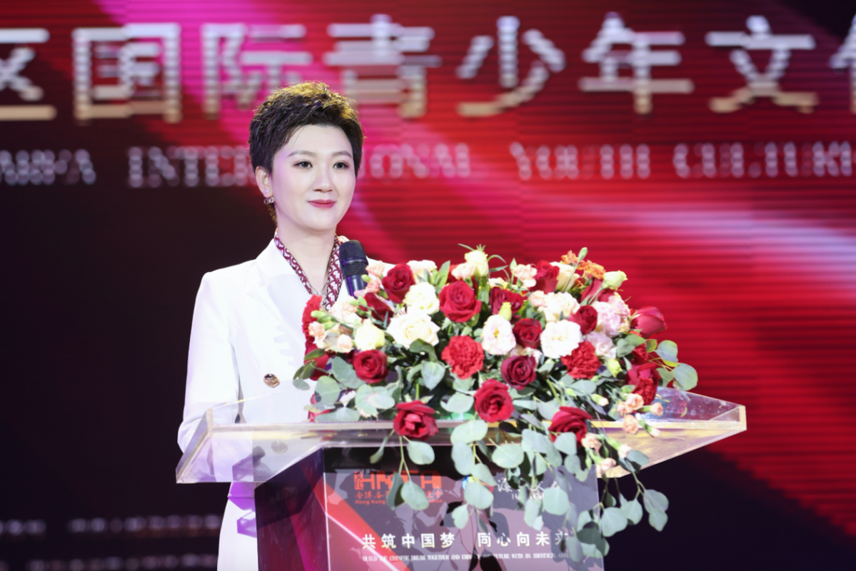 深圳寶安區委宣傳部副部長孫簫韻致辭 值得一提的是,由深圳、香港兩地青少年共同參與的開場舞《電音舞獅》,巧妙地將新時代電音元素融入中華傳統藝術表演形式之中,充分體現了大灣區青少年文藝創作的強勁動能,以及創新融合之路上攜手奮進的奕奕風采。此外,深圳青年代表李月辰一曲《我們的中國夢》,則傳遞出對祖國母親的深深祝福,對港澳與祖國同心同行、深度融合發展的美好期盼。
