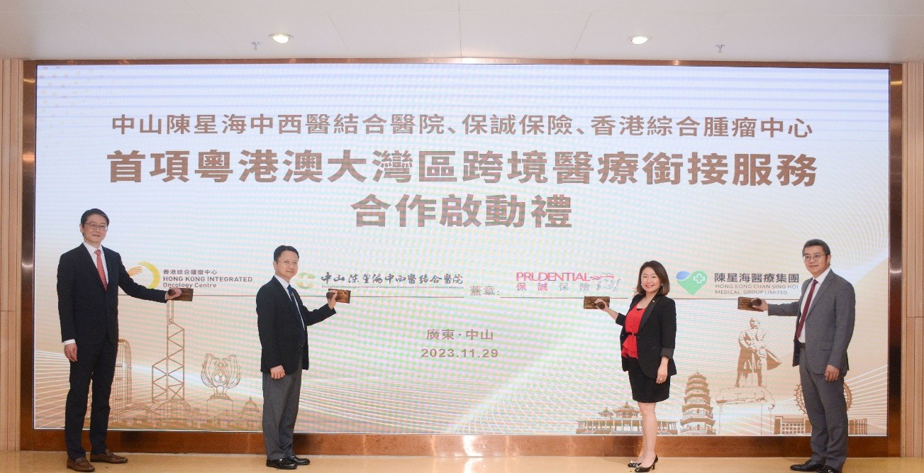 香港新聞網12月1日電 今年初通關後,往來兩地的人次顯著上升,大眾對跨境醫療服務的需求亦日益殷切。保誠保險有限公司(“保誠”)宣佈與香港綜合腫瘤中心(HKIOC)及中山陳星海中西醫結合醫院(“星院”)合作,成為香港首間保險公司聯同兩地醫療機構攜手於大灣區推出“跨境癌症治療免找數服務”,以配合“共同病患管理”模式*來提供更無縫的跨境醫療銜接服務。