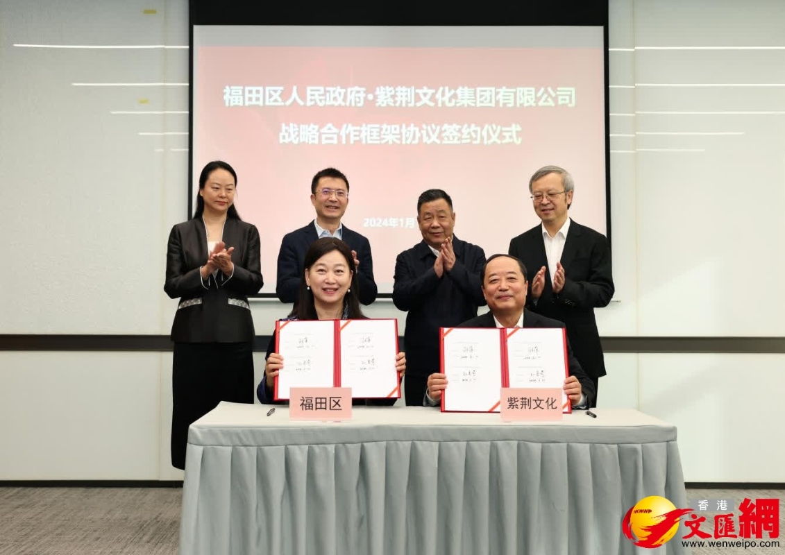 香港新聞網1月11日電 1月10日,深圳福田區人民政府與紫荊文化集團有限公司(以下簡稱“紫荊文化集團”)簽署戰略合作框架協議。簽約後,雙方將發揮各自優勢,在國際演藝、藝術會展、文化旅遊、廣播影視、新聞出版、劇院運營、產業發展、金融投資等方面進行全方位合作,共同打造新時代文化高質量發展典範。