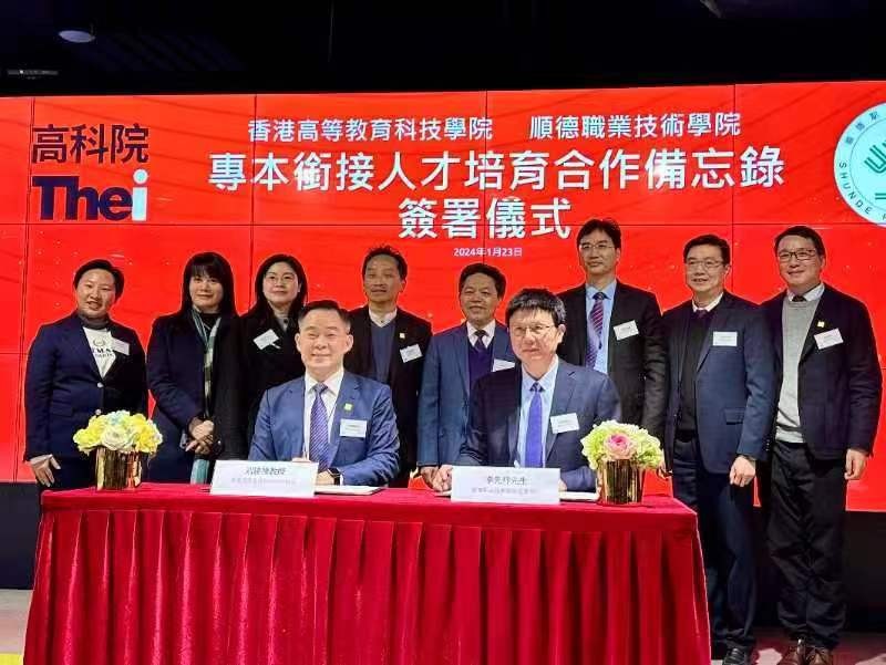 香港新聞網1月24日電 順德職業技術學院與香港高等教育科技學院教師發展中心成立揭牌暨“3+2”專本銜接人才培育合作備忘錄簽訂儀式,23日下午在香港高等教育科技學院柴灣校區舉辦。順德區委常委、統戰部部長梁偉沛,順德區委統戰部常務副部長區植朋,順德區大灣區辦常務副主任稂忠偉,順德職業技術學院黨委書記李先祥,香港高等教育科技學院校長劉建德教授等領導嘉賓參加活動。