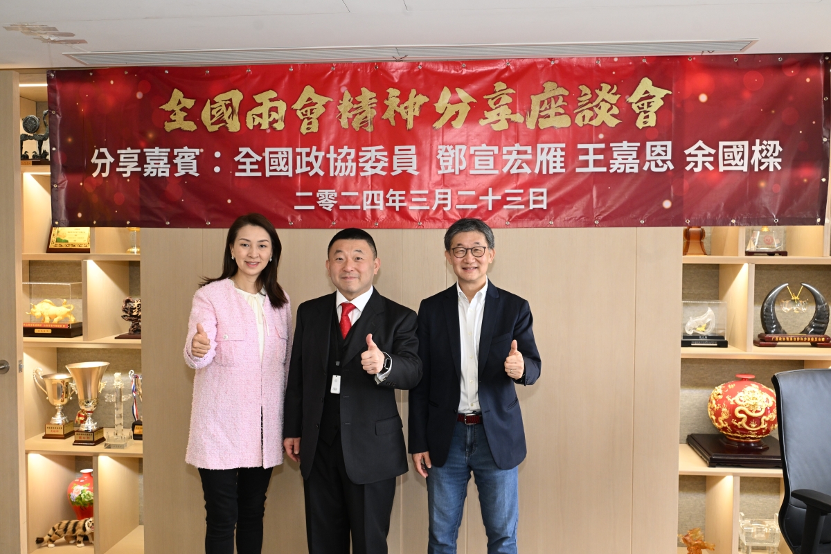 王嘉恩:香港要更好地融入國家發展大局香港新聞網3月24日電 由全國政協委員王嘉恩召集主辦之2024全國兩會精神分享座談會於3月23日假港區省級政協委員聯誼會會所圓滿舉行,線上線下召集共超過50名參與者,共同學習今年全國兩會的重要內容。座談會邀請得全國政協委員鄧宣宏雁、全國政協委員余國樑及全國政協委員王嘉恩作主題分享,互動內容豐富,氛圍熱烈。