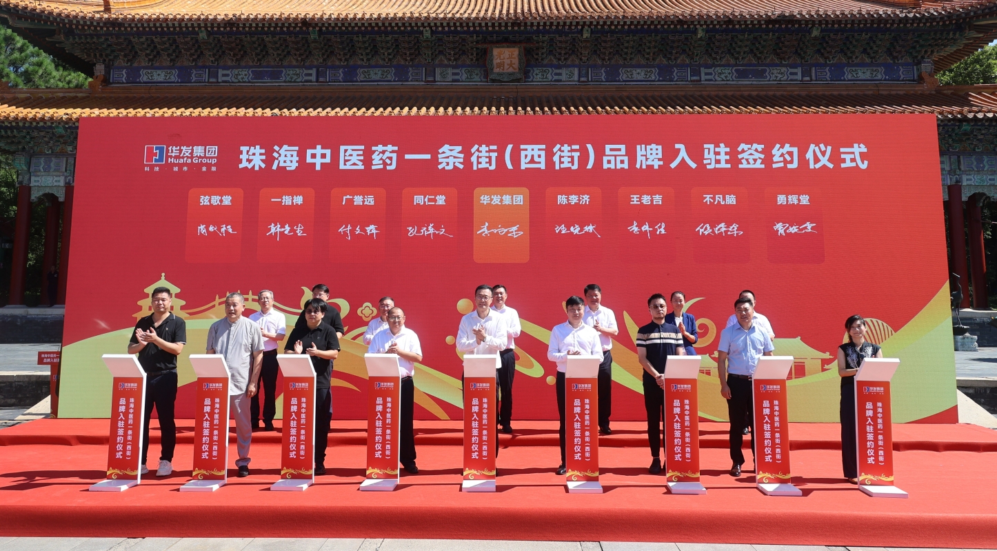 32家知名中醫藥品牌簽約進駐珠海中醫藥一條街香港新聞網8月4日電 “珠海中醫藥一條街(西街)品牌入駐簽約儀式”8月4日在圓明新園正大光明殿前廣場隆重舉行。北京同仁堂、廣藥集團(王老吉、陳李濟)、山西廣譽遠、澳門勇輝堂、澳門觀自在、澳門麗茶舍、澳門三茶七禮、珠海一指禪等32家內地及港澳知名中醫藥品牌商家,與項目運營方華發集團旗下“珠海九洲圓明新園中醫藥文化控股有限公司”簽署品牌入駐協議並將陸續進駐,帶來多元、優質、豐富的中醫藥健康消費選擇,助力大健康產業發展。