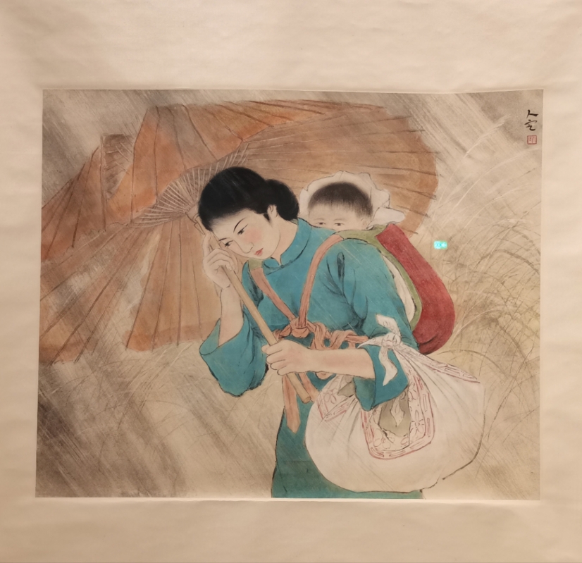 方人定《風雨途中》,1932年。(呂紀星攝) 一件由廣東藝術家方人定創作的《風雨途中》,描繪了年輕母親的堅毅,儘管手上的破傘難成遮蔽,但她堅強地帶著幼子和行囊,許是逃離戰亂或饑荒。據策展人楊浚承介紹,作者特別使用雲母這種閃爍的礦物來表現風雨交加的場景。 展覽“水火之間”單元,則聚焦1950至1960年代困擾香港的火災與水荒。這些災禍深刻影響了當時大量從廣東湧入、尋求安穩生活的移民群體。單元中的作品不僅記錄了災難本身,更透過粵港移民的視角,折射出兩地共同面對的挑戰。