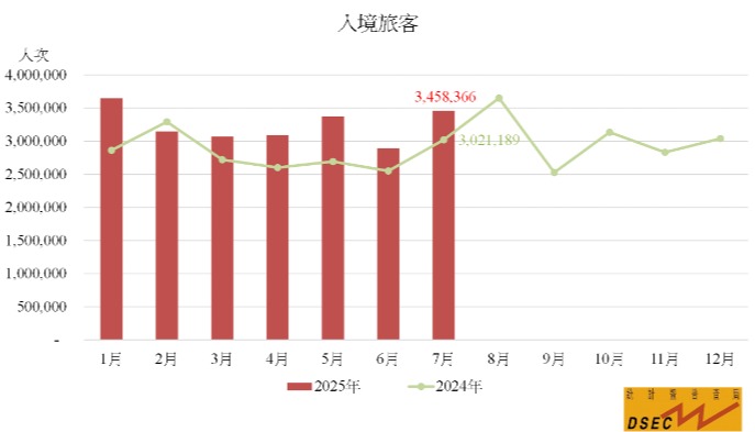 香港中通社資料圖片 其中,不過夜旅客(11182913人次)與留宿旅客(8035627人次)較去年同期分別上升25.8%及2.6%。受不過夜旅客佔比上升影響,旅客累計平均逗留時間按年減少0.1日至1.1日;不過夜旅客(0.2日)及留宿旅客(2.3日)的平均逗留時間則維持不變。 按客源分析,上半年中國內地旅客按年增加19.3%至13767810人次,個人遊旅客(7412318人次)上升24.6%。透過“一周一行”、“一簽多行”及“團進團出”方式入境的旅客分別有867492人次、241257人次及72149人次。在珠海市旅客按年增長57.0%的帶動下,大灣區珠三角九市旅客增加25.7%至7016216人次。香港特區(3647321人次)與台灣地區(461735人次)旅客分別較去年同期上升1.1%及14.0%。 上半年國際旅客共1341674人次,按年增加14.8%。東南亞市場方面,菲律賓(273715人次)、印尼(104608人次)、馬來西亞(90259人次)及泰國(80932人次)旅客同比分別上升16.8%、13.8%、6.0%及8.8%,而新加坡(54543人次)旅客則減少0.7%。來自南亞的印度(58309人次)旅客較去年同期上升6.2%。東北亞的韓國(282151人次)及日本(76435人次)旅客按年分別增加21.7%及23.5%。長途客源中,美國旅客(76457人次)按年上升9.9%。 按入境渠道統計,上半年經陸路(15780124人次,佔總數82.1%)入境的旅客按年上升20.4%,其中經關閘和橫琴口岸入境的旅客分別錄得25.5%及40.6%增幅。經海路(1978499人次,佔10.3%)及經空路(1459917人次,佔7.6%)入境的旅客同比分別減少5.2%及4.1%。 2025年6月入境旅客共2891003人次,按年上升13.3%;不過夜旅客(1611641人次)及留宿旅客(1279362人次)分別增加22.5%及3.6%。旅客平均逗留時間為1.2日,按年持平;不過夜旅客(0.2日)維持不變,而留宿旅客(2.4日)則增加0.1日。(完) 【編輯:梁嘉軒】