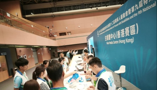 香港中通社10月26日電(記者 陳卓儀)第十五屆全國運動會香港賽區主媒體中心10月26日投入運作,香港中通社記者當天探訪體育館改裝而成的媒體中心,細節滿滿,頗有香港風情。
