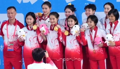 圖源:江蘇省體育局 當天上午,第十五屆全運會賽艇項目決賽在位於廣州白雲的廣東國際划船中心舉行,江蘇運動員張自毫、臧哈、張漢文、蔡鵬鵬以4分12秒24的成績奪得男子四人雙槳金牌。 在頒獎環節中,江蘇省代表團團長陳忠偉為獲獎運動員、教練員頒發獎牌。江蘇省代表團副團長劉建向獲獎運動員、教練贈送本屆全運會吉祥物“喜洋洋”“樂融融”。 在同天結束的賽艇女子四人雙槳決賽中,江蘇運動員徐懿汐、丁佳雯、鄭佳瑤、朱虹以4分38秒49的成績為江蘇代表團再添一枚銅牌。(完) 【編輯:梁嘉軒】
