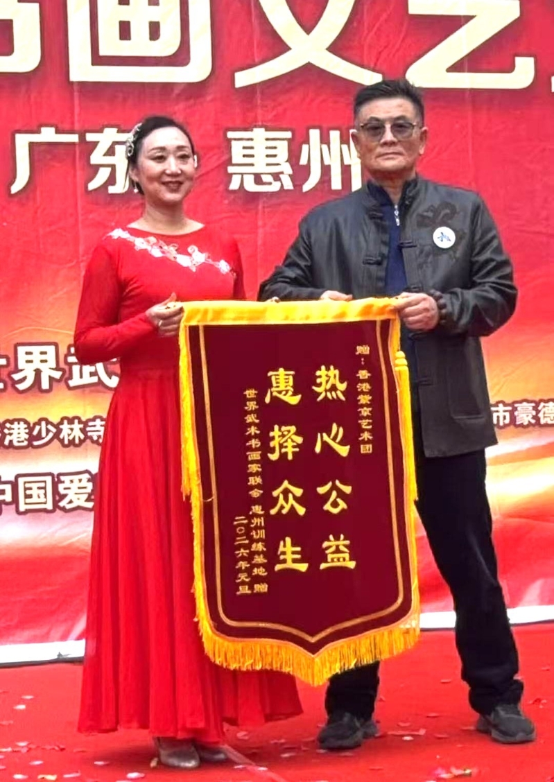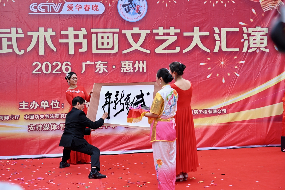 香港新聞網1月1日電(陳文圖文)元月1日,新年伊始,慶元旦武術書畫文藝大匯演在惠州武術訓練基地舉行,大灣區武術界與書畫界代表齊聚惠東同台獻藝。期間,世界武術書畫家聯會亞太非遺南少林五祖拳傑出代表、第五代傳承人高國雄師傅收徒儀式同時舉行。見證嘉賓有:馮礎堅、謝學良、施能雄、葉英飆、李嬋玲、馮麗萍、蘇少藝、黃漢平、高國良、方潮陽。活動贊助單位;智慧中國愛我中華(愛華春晚)、中國功夫書法研究院、香港少林寺文化中心、香港紫京藝術團、深圳豪德居工程有限公司、善味閣餐飲集團。