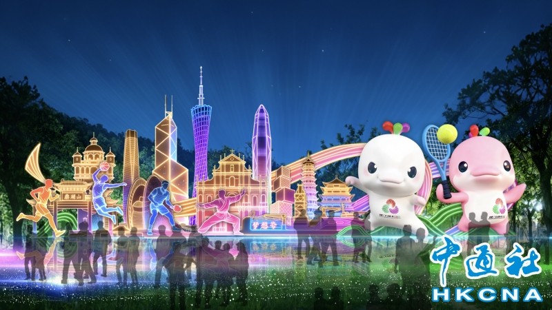 香港中通社圖片 為進一步展現粵港澳大灣區地域特色和文化魅力,本屆燈會多維度、全方面展示港澳文化元素。 “星河馳騁·駿馬騰雲”展區,精心設計帶有“9+2”城市市花的11匹駿馬;“活力大灣區”燈組,以全運會吉祥物和大灣區“9+2”城市地標為主角,還原粵港澳三地首次共同舉辦全運會的盛大景象;“同根同源·灣區和韵”主題展區,以大灣區經典影視作品、金曲為紐帶,融合灣區懷舊場景與花城生態美學,打造集聽覺記憶、視覺沉浸與人文共鳴於一體的沉浸式記憶場景。
