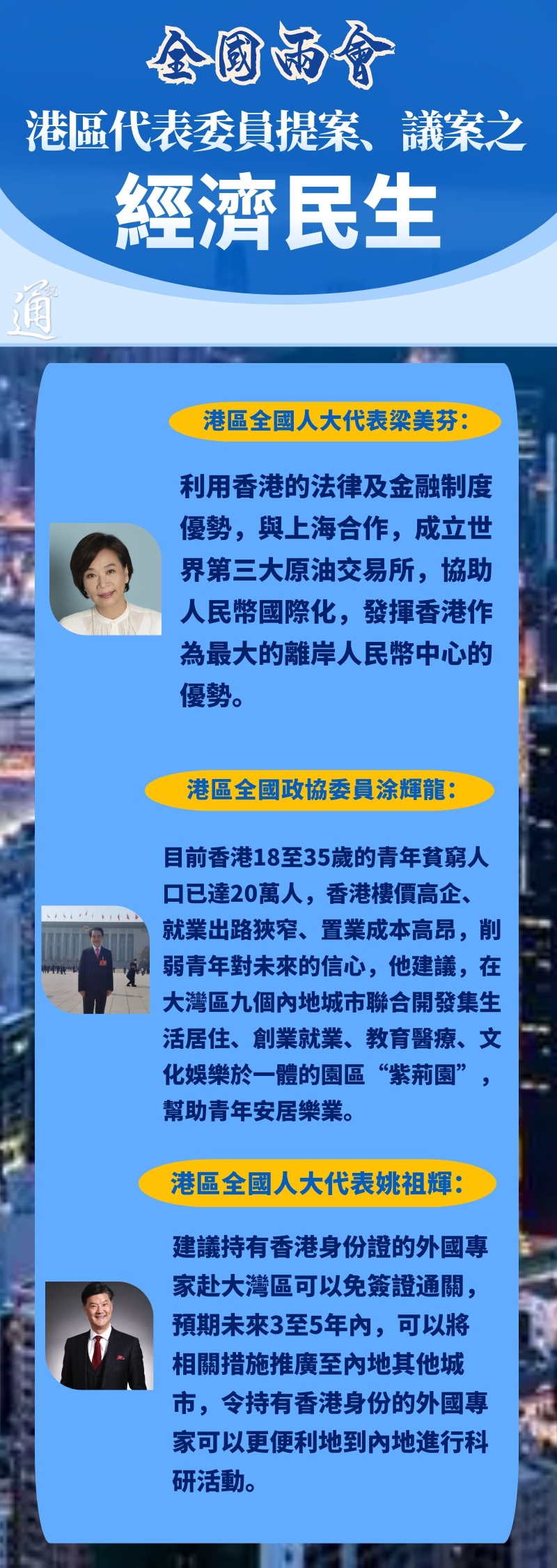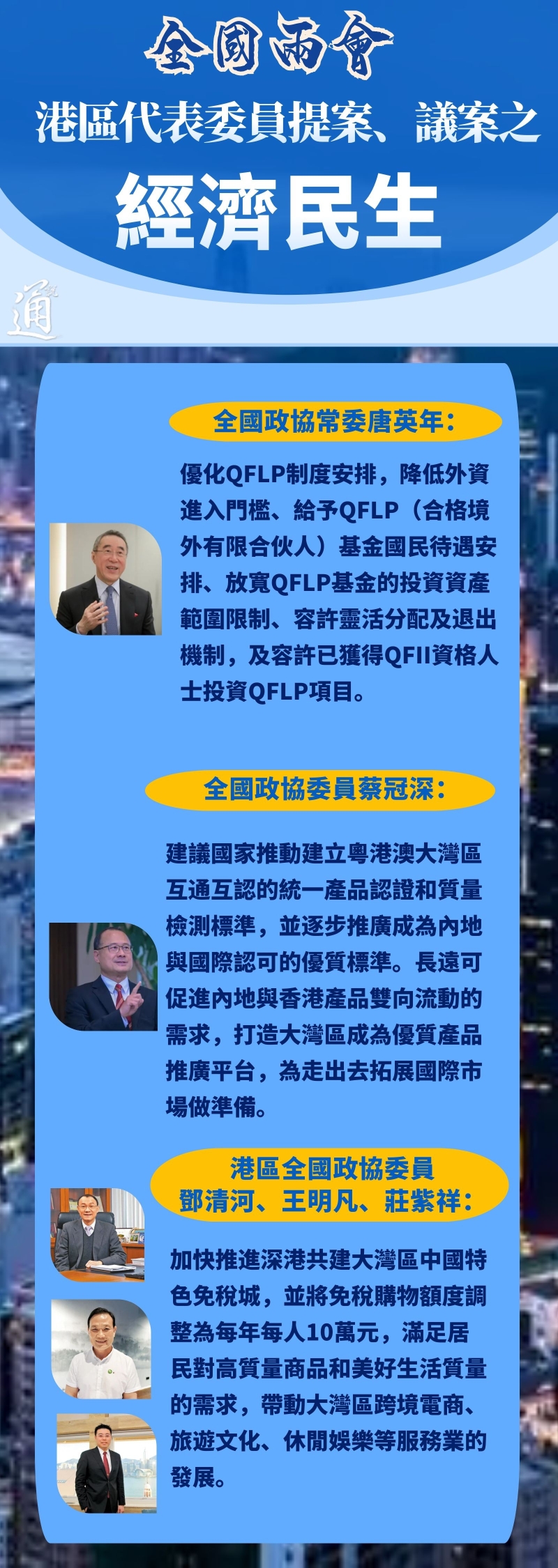 【全國兩會|港區代表委員提案、議案之經濟民生篇】