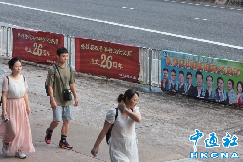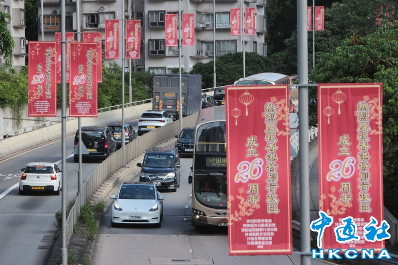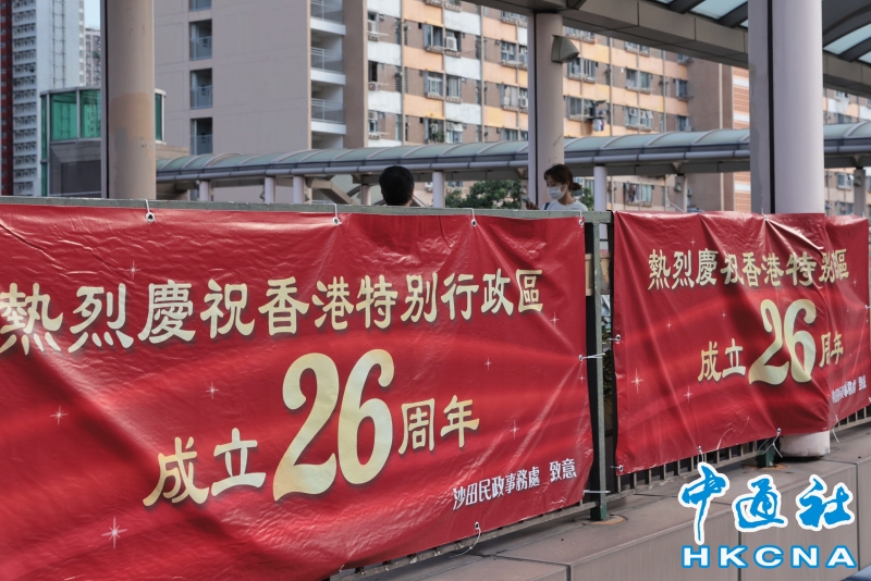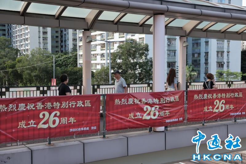 香港沙田街頭慶回歸26周年氛圍濃厚分享到: