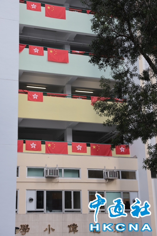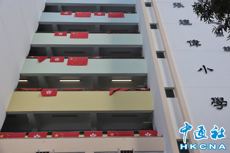 香港小學懸掛國旗區旗慶回歸26周年分享到: