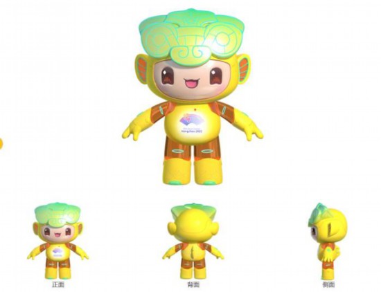 吉祥物“琮琮”。杭州亞運會官網截圖 “琮琮”的設計靈感源自良渚玉琮,代表世界遺產良渚古城遺址。它全身以源自大地、象征豐收的黃色為主色調,頭部裝飾的紋樣取自良渚文化的標誌性符號“神人獸面紋”,意寓“不畏艱險、超越自我”。“琮琮”堅強剛毅、敦厚善良、體魄強健、熱情奔放,擅長力量型與傳統項目,如武術、舉重等。