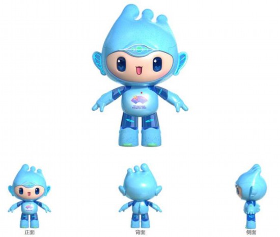 吉祥物“宸宸”。杭州亞運會官網截圖 “宸宸”代表世界遺產京杭大運河。它全身以科技藍為主色調,頭頂舉世罕見的錢江潮,額頭嵌以拱宸橋的圖案。“宸宸”機智勇敢、聰慧靈動、樂觀向上、積極進取,速度型項目和球類項目是它的最愛。