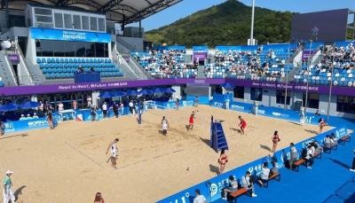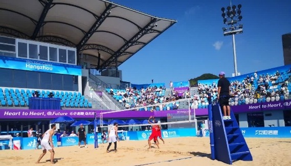 香港新聞網9月20日電 杭州亞運會19日進入第一個比賽日,板球、排球、足球、沙灘排球等項目的小組賽和預賽率先開打。沙灘排球小組賽揭幕戰中,中國男隊2∶0戰勝巴勒斯坦隊取得開門紅,這也是中國體育代表團在本屆亞運會上的首次亮相,稍後進行的女子沙灘排球小組賽中,中國組合薛晨/夏欣怡2∶0輕取斯里蘭卡組合。