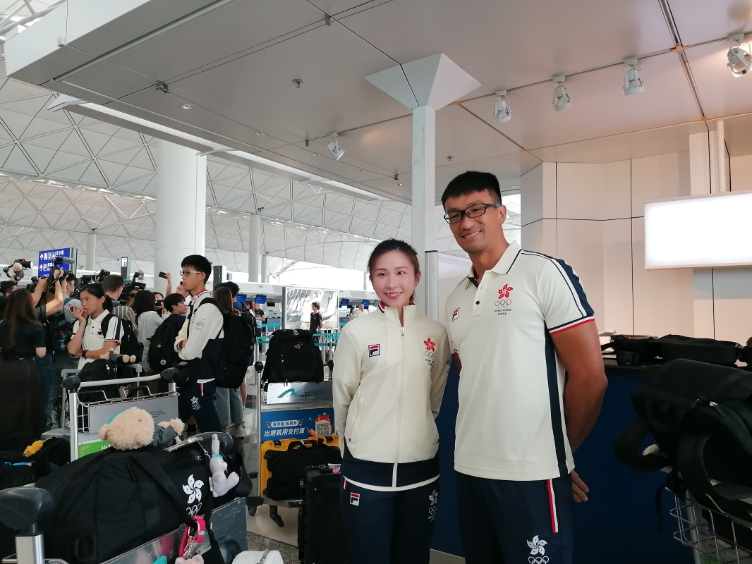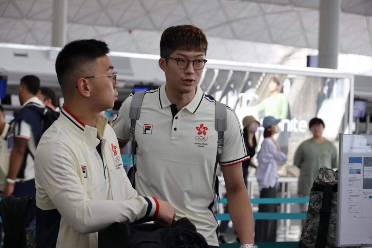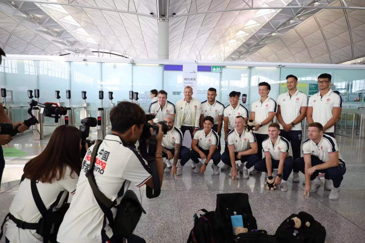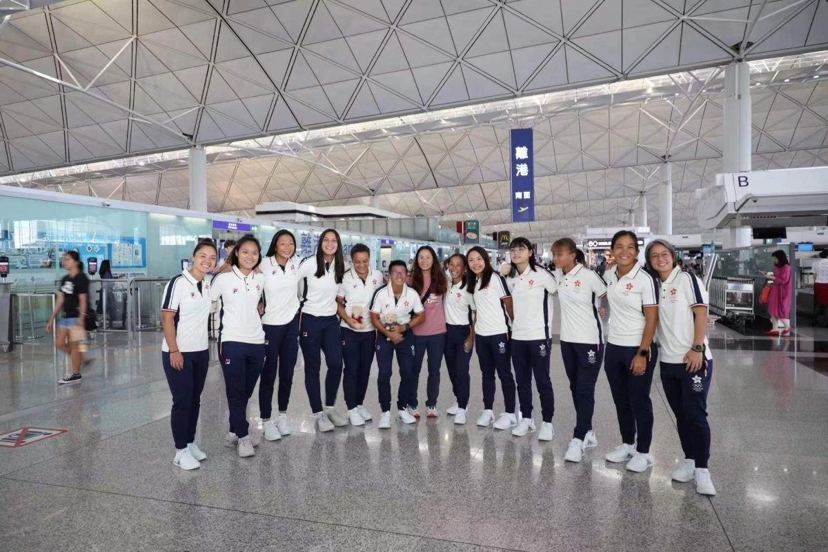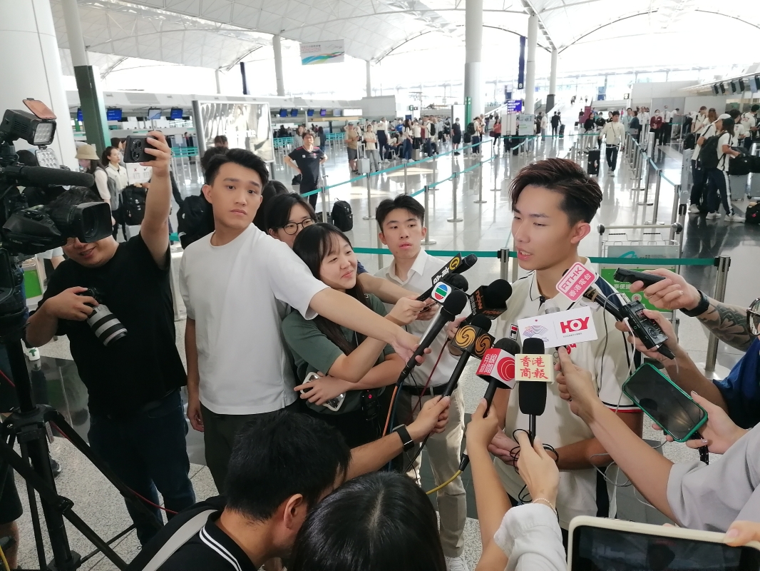 中國香港代表團部分成員9月21日上午在香港國際機場出發前往杭州參加亞運會