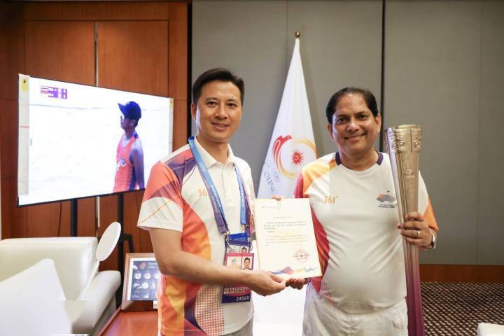 杭州亞運會火炬傳遞指揮中心副指揮長杜作鋒向維諾德·帝瓦裡(右)贈予火炬。來源:錢江晚報 “杭州亞運會的基礎設施和體育場館完全遵循環保理念而建造。我們看到這裡幾乎所有的汽車都是電動汽車,這將會為之後舉辦的亞運會樹立榜樣。”維諾德說,其他國家可以借鑒杭州亞運會的綠色辦賽理念。 杭州亞運會中使用一系列智能化應用,為賽事帶來了便捷,這讓維諾德印象深刻。 “最令人印象深刻的是,這裡沒有人使用現金,他們都用手機支付。另一個讓我印象深刻的是亞運會身份註册卡。你只要走過安檢閘口,屏幕上就會直接顯示出你的照片,根本不用掃描條形碼或者其他標識。”維諾德說,這些數字技術為這屆賽事增色不少。 維諾德補充說,舉辦亞運會的意義不僅僅在於競技和體育,還在於加強文化交流。作為杭州第19屆亞運會火炬傳遞活動最後一站的火炬手,他對崇尚人文與自然和諧的美麗西湖贊不絕口。 “2006年,我們在卡塔爾的多哈舉辦亞運會時,幾乎沒有人聽說過多哈,但現在它已經成為一個體育中心。”維諾德說,“亞運會將為杭州注入活力,讓世界認識杭州。我相信當杭州舉辦完亞運會時,它不僅將會是中國的一個體育中心,也將成為全亞洲的一個體育中心。” 維諾德代表亞奧理事會向全世界觀眾發出誠摯邀請:“歡迎大家來杭州,來這裡的亞運場館看比賽。讓我們祝所有運動員一切順利。你們的掌聲和熱情會激勵他們秀出實力、賽出風采!”(完) 【編輯:胡雪石】