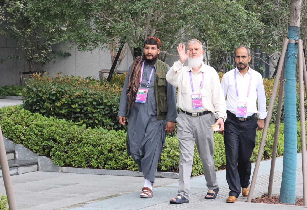 外國體育代表團成員與杭州亞運會吉祥物留影