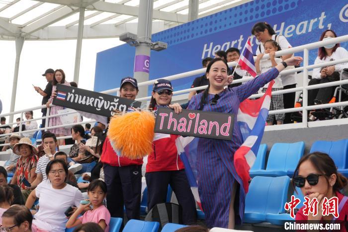 9月26日,在杭州亞運會馬術比賽現場,泰國觀眾為公主希里婉瓦麗加油。記者 史春陽 攝 希里婉瓦麗和許多王室成員一樣,自幼接受馬術和羽毛球訓練。她曾參加過2014年韓國亞運會,在2017年東南亞運動會盛裝舞步團體賽中獲得銀牌。 據瞭解,此次泰國派出1000多人的代表團參加杭州亞運會40個項目的比賽。 【編輯:俞丹鳳】