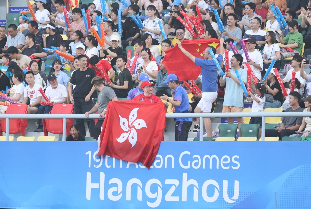 香港新聞網9月26日電(記者 洪少葵)9月26日,杭州亞運會男子七人欖球決賽,中國香港隊對壘韓國隊,經過激烈爭逐,最後香港隊14比7擊敗韓國隊,成功衛冕,連續兩屆奪得金牌。港隊男子七人橄欖球是上屆雅加達亞運的冠軍,以衛冕為目標的隊員們,擊敗韓國奪得金牌。 這項比賽一直是港隊強項,雖說眾望所歸,但一群老將也贏得不容易。