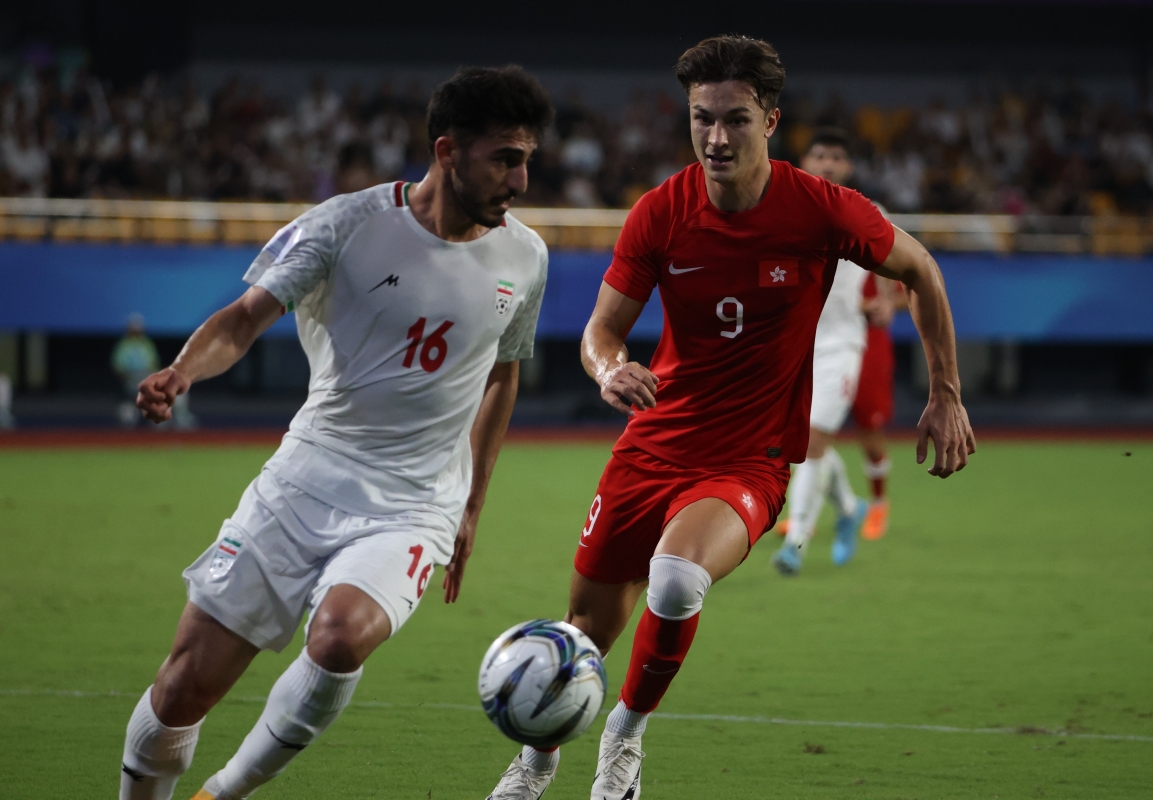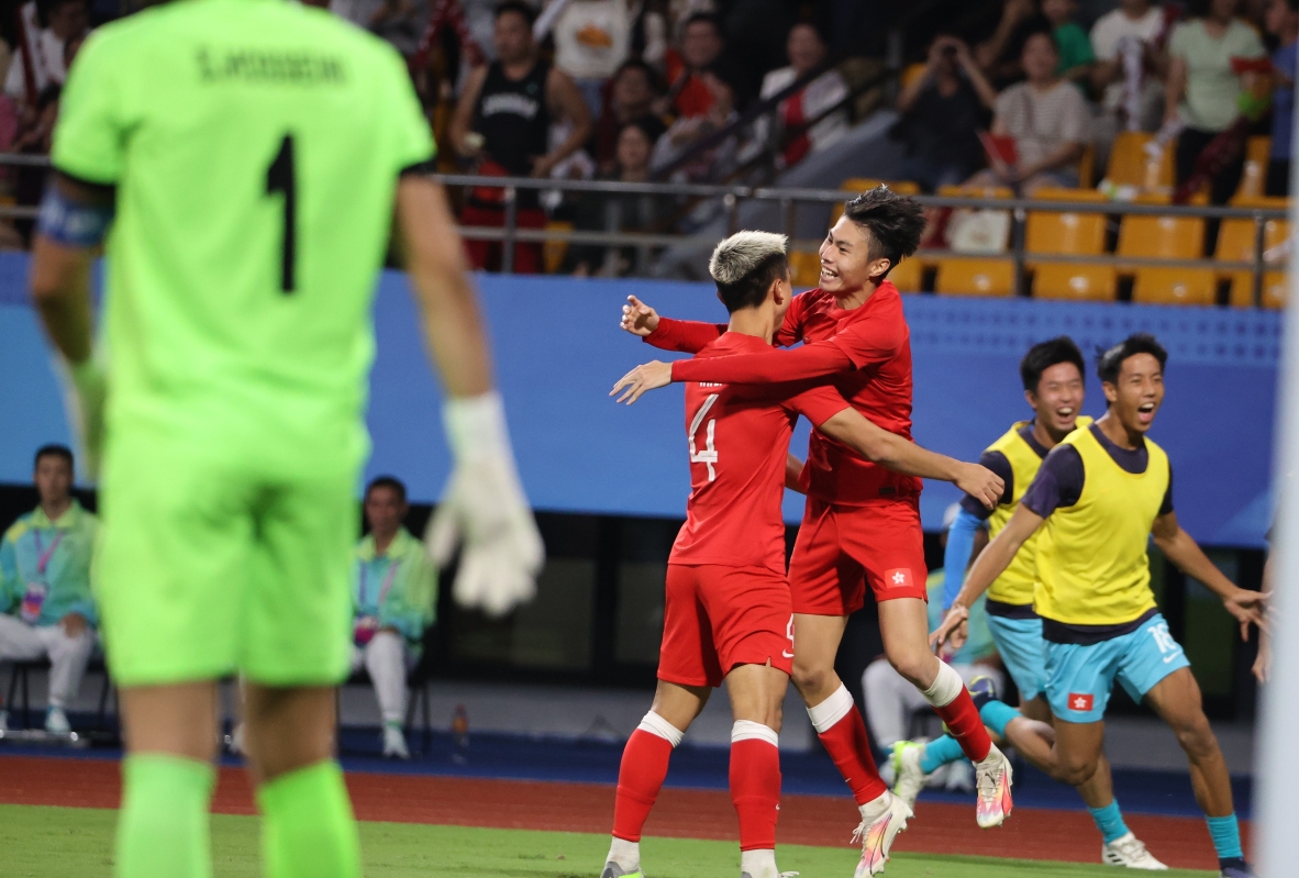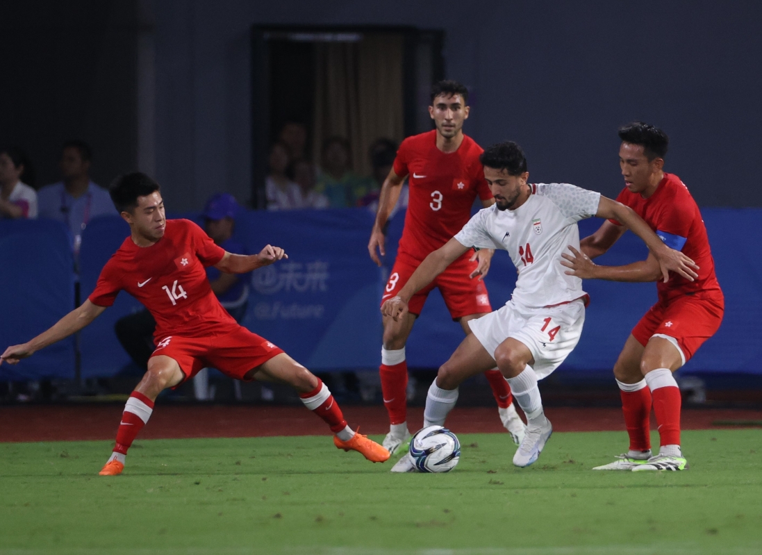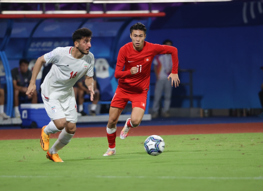 香港新聞網10月2日電(記者洪少葵攝) 10月1日晚,杭州亞運會足球賽事上,男子組前八名決賽,中國香港隊(紅衣)戰勝伊朗隊,進入半決賽。當日,在杭州亞運會足球男子組四分之一決賽中,中國香港隊以1比0戰勝伊朗隊,晉級四強。
