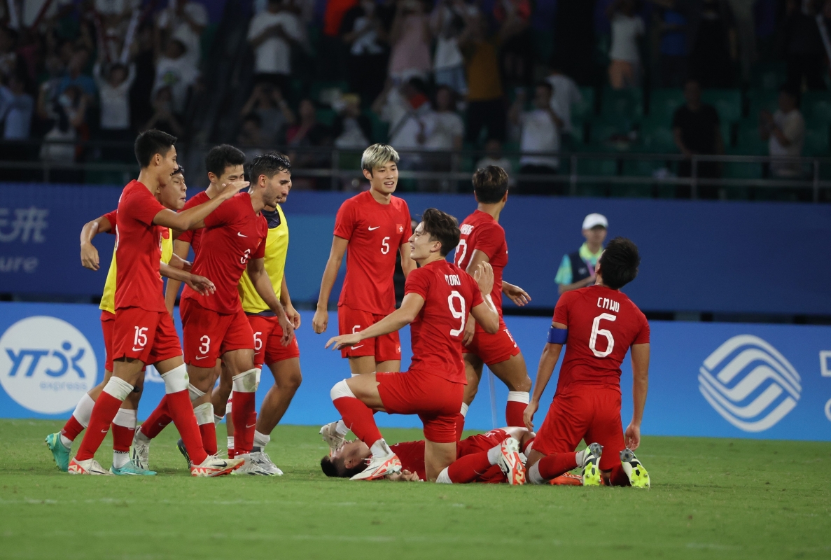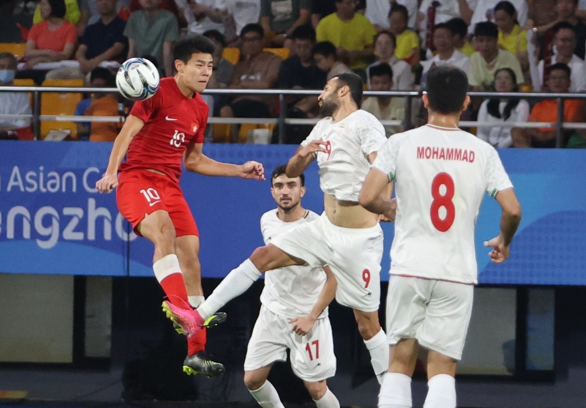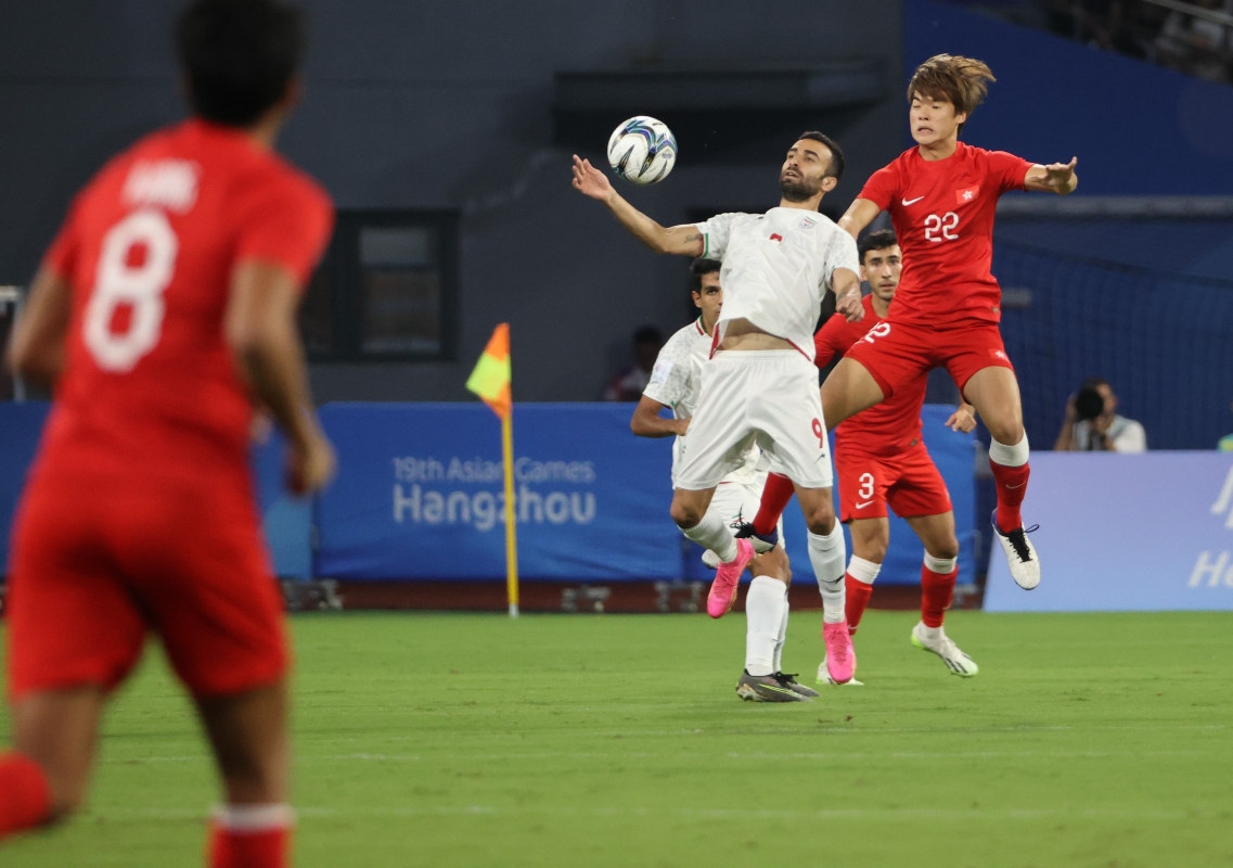 香港新聞網10月2日電(記者洪少葵攝) 10月1日晚,杭州亞運會足球賽事上,男子組前八名決賽,中國香港隊(紅衣)戰勝伊朗隊,進入半決賽。當日,在杭州亞運會足球男子組四分之一決賽中,中國香港隊以1比0戰勝伊朗隊,晉級四強。