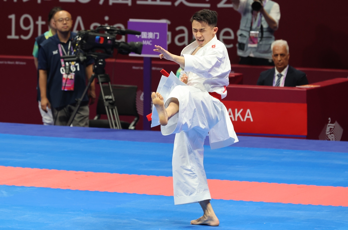 香港新聞網10月5日電(記者洪少葵)10月5日,杭州亞運會擁有14枚金牌的空手道賽事拉開戰幕。香港選手劉慕裳獲空手道女子個人型銅牌。另外,中國澳門選手郭建恒獲得個人型銀牌。在當日進行的男子個人型金牌賽中,中國澳門選手郭建恒不敵日本選手本一將,摘得一枚銀牌。
