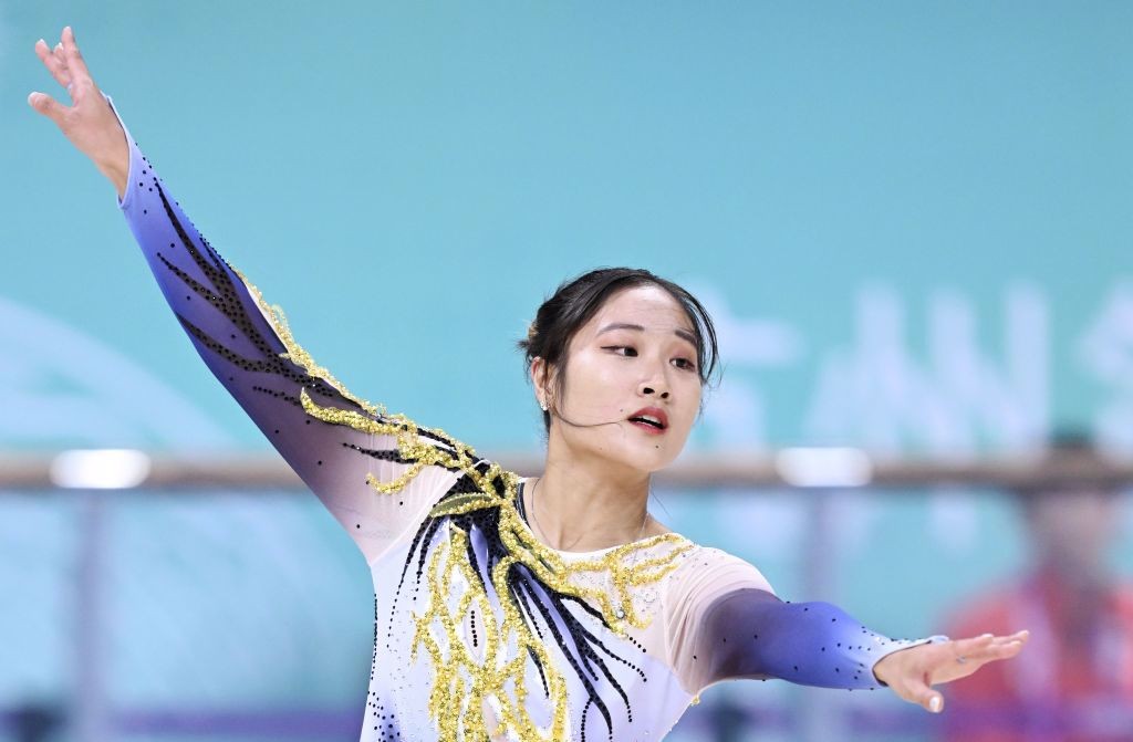 中華台北代表隊選手洪筱晴 新華社圖片 本次花樣輪滑短曲和長曲項目,中華台北隊選手洪筱晴6日在短曲項目以38.76分暫居第1,7日長曲項目出現小失誤,最終獲得55.62分,仍以總分94.38分拿下金牌。 中華台北代表隊本屆亞運已獲得18枚金牌,超過上屆雅加達亞運會17枚金牌,距離1998年曼谷亞運會19枚金牌的隊史最佳紀錄,只差1枚金牌。 男子棒球為中華台北隊有望奪金的項目,在7日對陣韓國的決賽中,中華台北隊以0比2的比分落敗,遺憾未能拿下第19枚金牌。(完) 【編輯:俞丹凤】