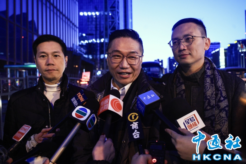 •   3月3日,港區全國政協委員陸續抵達北京。圖為港區全國政協委員邵家輝(中)、吳傑莊(左)和李鎮強(右)抵達下榻酒店後會見傳媒。(香港中通社記者 許其皓攝) 香港中通社圖片