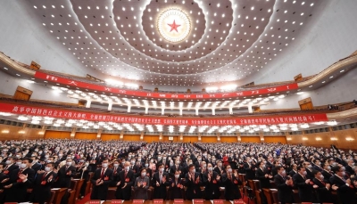 3月5日,十四屆全國人大二次會議在北京人民大會堂開幕,香港特區行政長官李家超(二排中)、澳門特區行政長官賀一誠(二排左)列席開幕會。(香港中通社記者 許其皓攝) 香港中通社圖片 賀一誠表示,今年是新中國成立75周年,是實現“十四五”規劃目標任務的關鍵一年,今次全國兩會將開闢以中國式現代化全面推進強國建設、民族復興偉業的新局面。 他強調,澳門特區政府將攜手社會各界認真學習、貫徹和落實全國兩會精神,奮力開啟具有澳門特色的“一國兩制”成功實踐、行穩致遠新篇章,以新的發展成果迎接中華人民共和國75周年華誕、澳門回歸祖國25周年,以及橫琴粵澳深度合作區成立3周年暨第一階段發展目標實現之年三項重要盛事。(完) 【編輯:馬華】