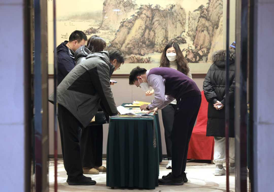 2月27日,位於北京梅地亞中心的全國兩會新聞中心,媒體記者在領取證件。來源:經濟日報
