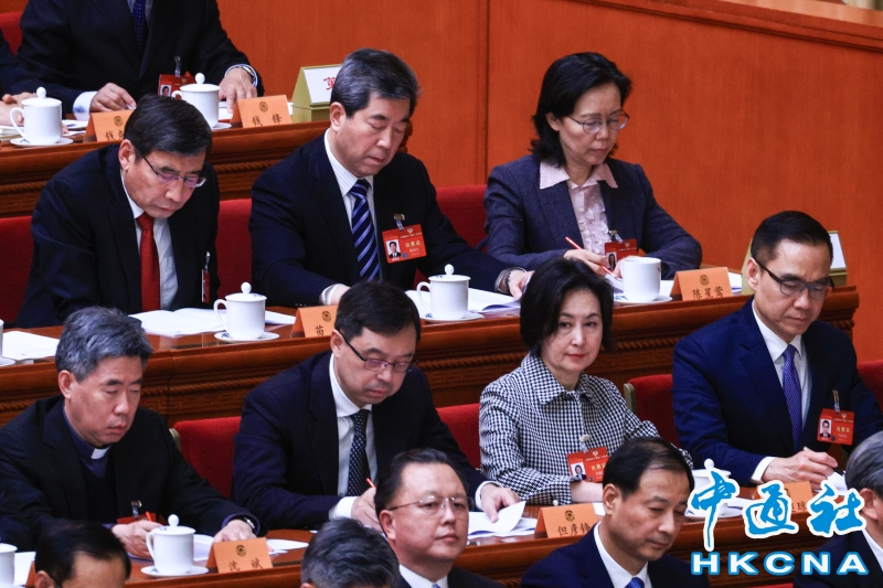 •   3月4日,全國政協十四屆二次會議在北京人民大會堂開幕。圖為全國政協常委何超瓊(前排右二)出席開幕會。(香港中通社記者 許其皓攝) 香港中通社圖片