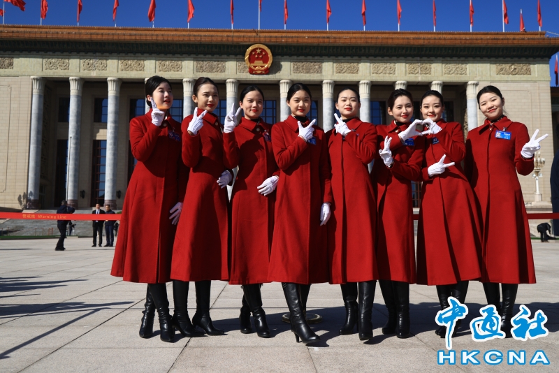 •   3月8日,“三八”國際婦女節,十四屆全國人大二次會議在北京人民大會堂舉行第二次全體會議。禮儀小姐成靓麗風景線。(香港中通社記者 許其皓攝) 香港中通社圖片
