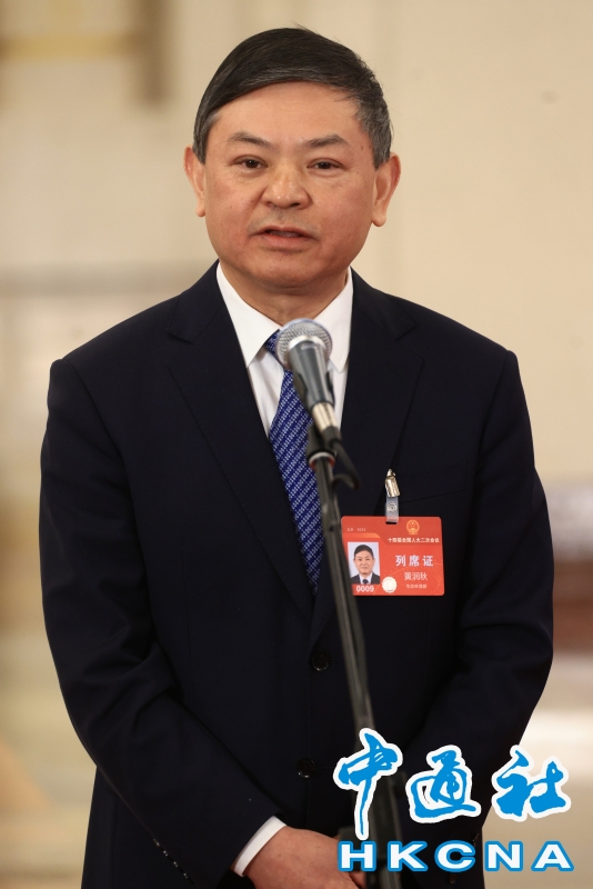 •   3月8日,十四屆全國人大二次會議第二場“部長通道”集中採訪活動在北京人民大會堂舉行。圖為生態環境部部長黃潤秋接受媒體採訪。(香港中通社記者 許其皓攝) 香港中通社圖片