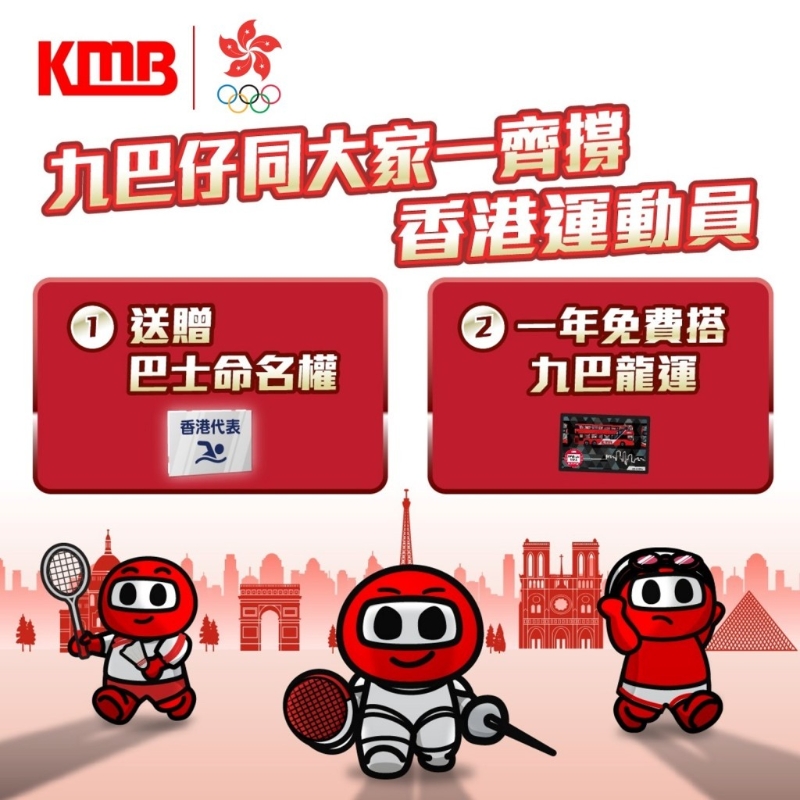 香港新聞網7月25日電 巴黎奧運還開幕在即,中國香港代表團35名運動員已前往巴黎備戰比賽。九巴今日(25日)宣布,將向所有出戰巴黎奧運會的中國香港代表團成員送贈一年免費乘搭九巴和龍運巴士,以及向港隊運動員送贈巴士命名權。九巴稍後亦會推出以“支持港隊”為設計主題的巴士,與全港市民一齊支持奧運港隊健兒。