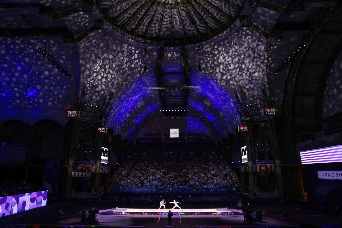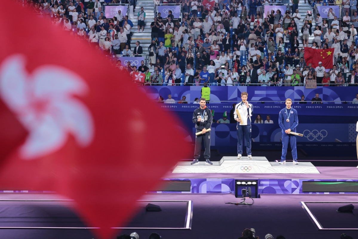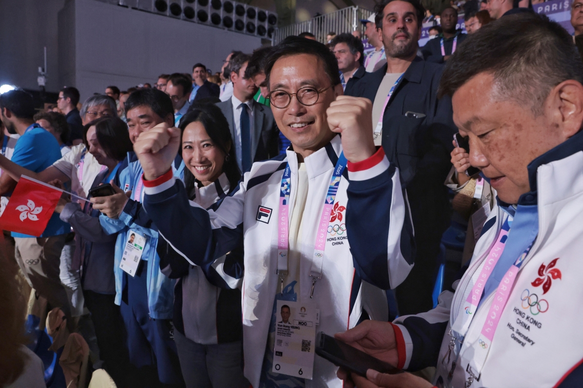 香港特區政府文化體育及旅遊局局長楊潤雄等嘉賓在巴黎大皇宮現場觀看比賽,見證張家朗奪得金牌